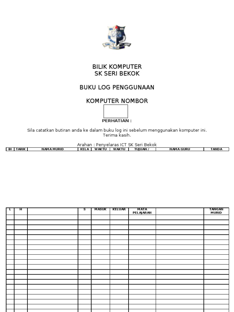 Contoh Buku Rekod Penggunaan Komputer