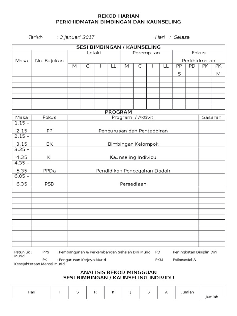 Buku Rekod Perkhidmatan Bimbingan Kaunseling Selasa