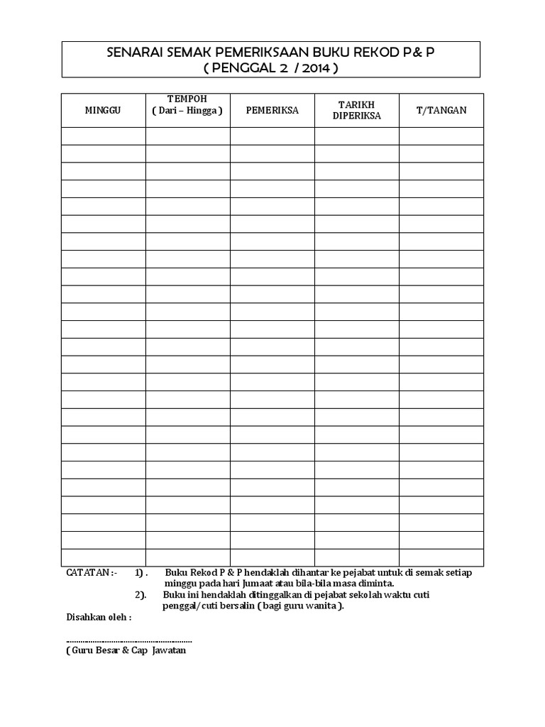 Ppps dg-41 bulan tarikh penghantaran tandatangan penyemak catatan januari februari mac april mei jun julai ogos 2. Senarai nama buku pelajaran buku rujukan guru 9. Bahan yang penting juga kepada guru adalah penyediaan buku ataupun fail rekod pengajaran harian atau fail rekod persediaan mengajar.