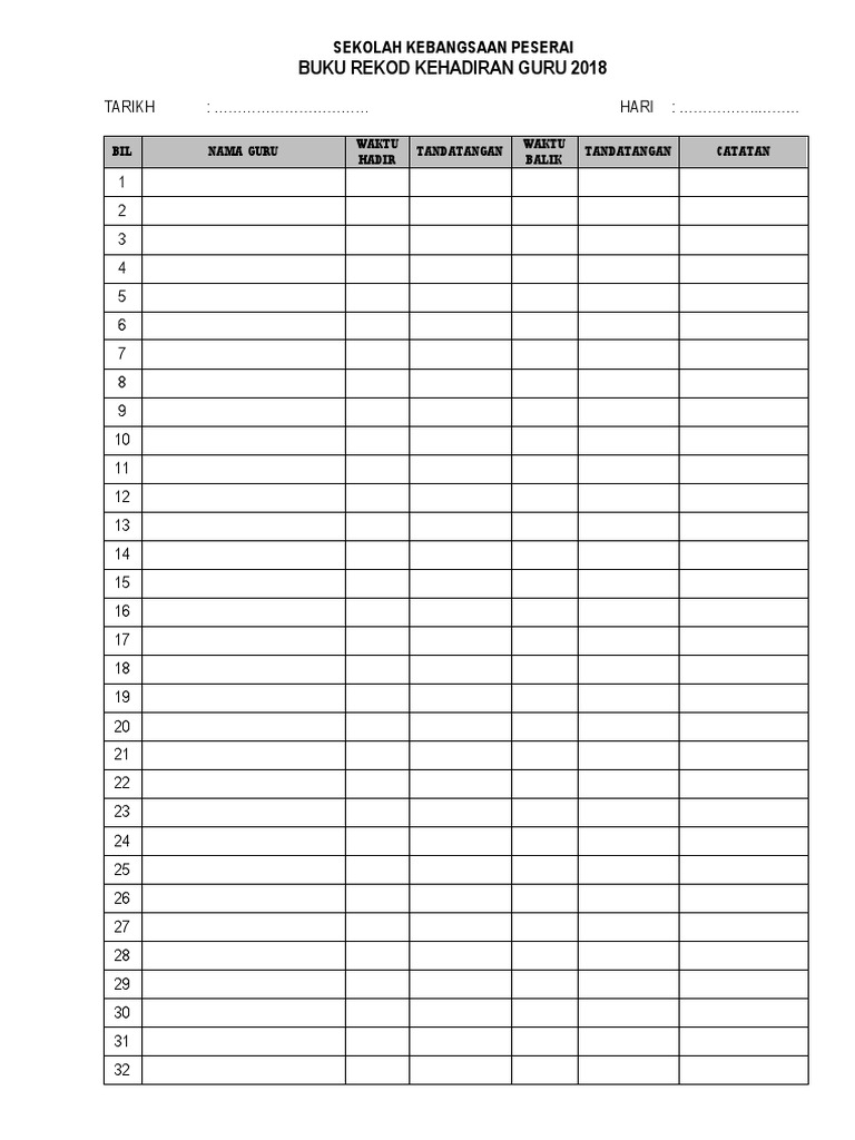 Template ini juga boleh dijadikan Buku Rekod Kedatangan Murid yang merupakan dokumen penting sekolah. Download Borang Info Guru. Kehadiran Contoh Rekod Kedatangan Pekerja.